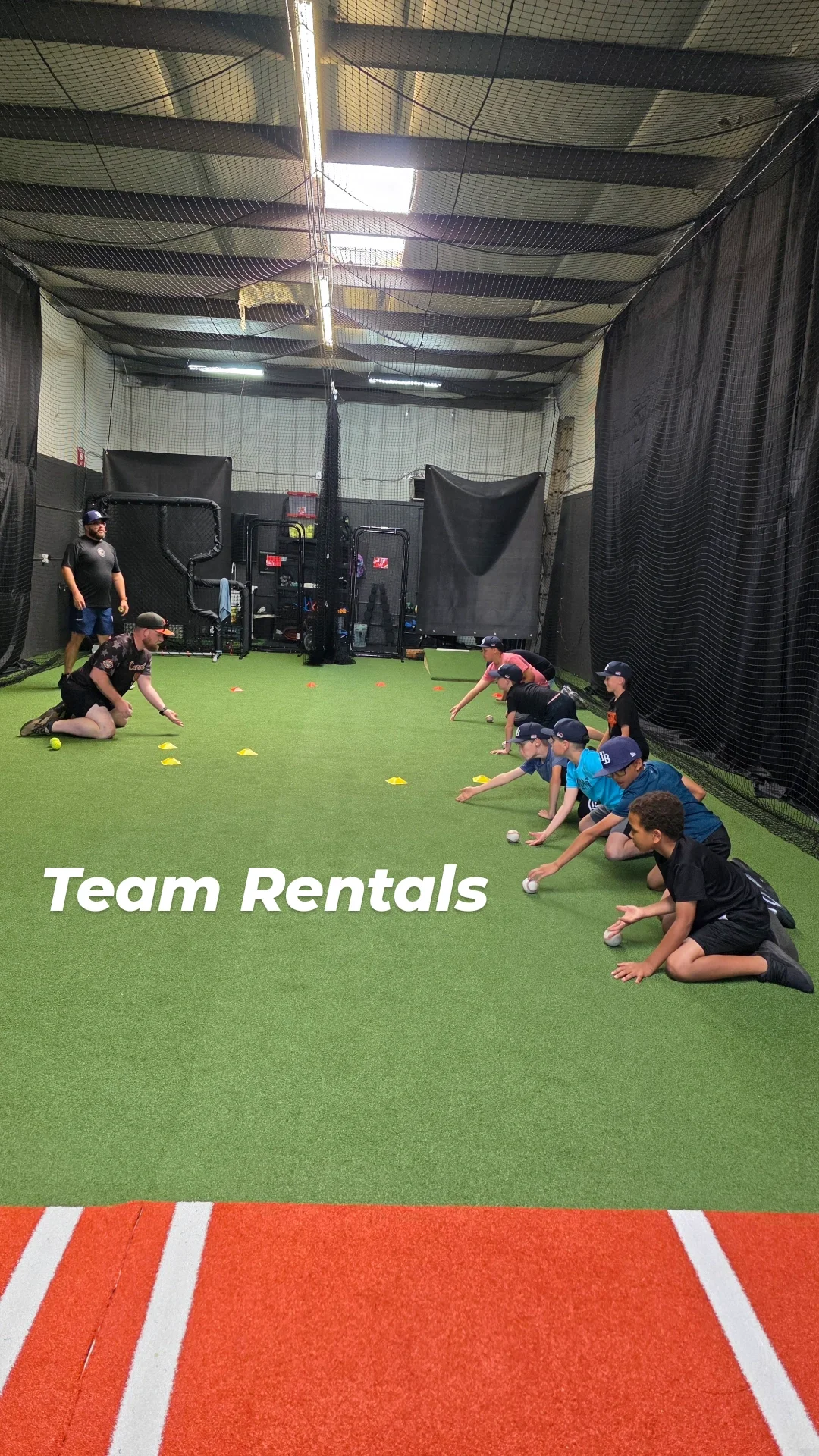 OPEN CAGE, L-SCREEN OR FRONT TOSS SCREEN, ACCESS TO SMALL WEIGHT AREA, AGILITY EQUIPMENT, TEES, BALLS, BASEBALL OR SOFTBALL MOUND UPON REQUEST, DIVING PAD
